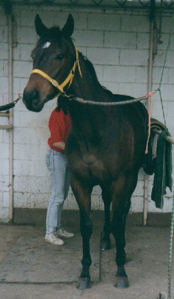Bobby is a 27 year old Thoroughbred gelding, he raced as a young horse under the name Late Whisper. He was an amazing school master in his later years, I taught many young people to do dressage and jumping on him. He was worth his weight in gold. The only problem is that he chronically injured himself and habitually colicked which is very stressful for him and for us.